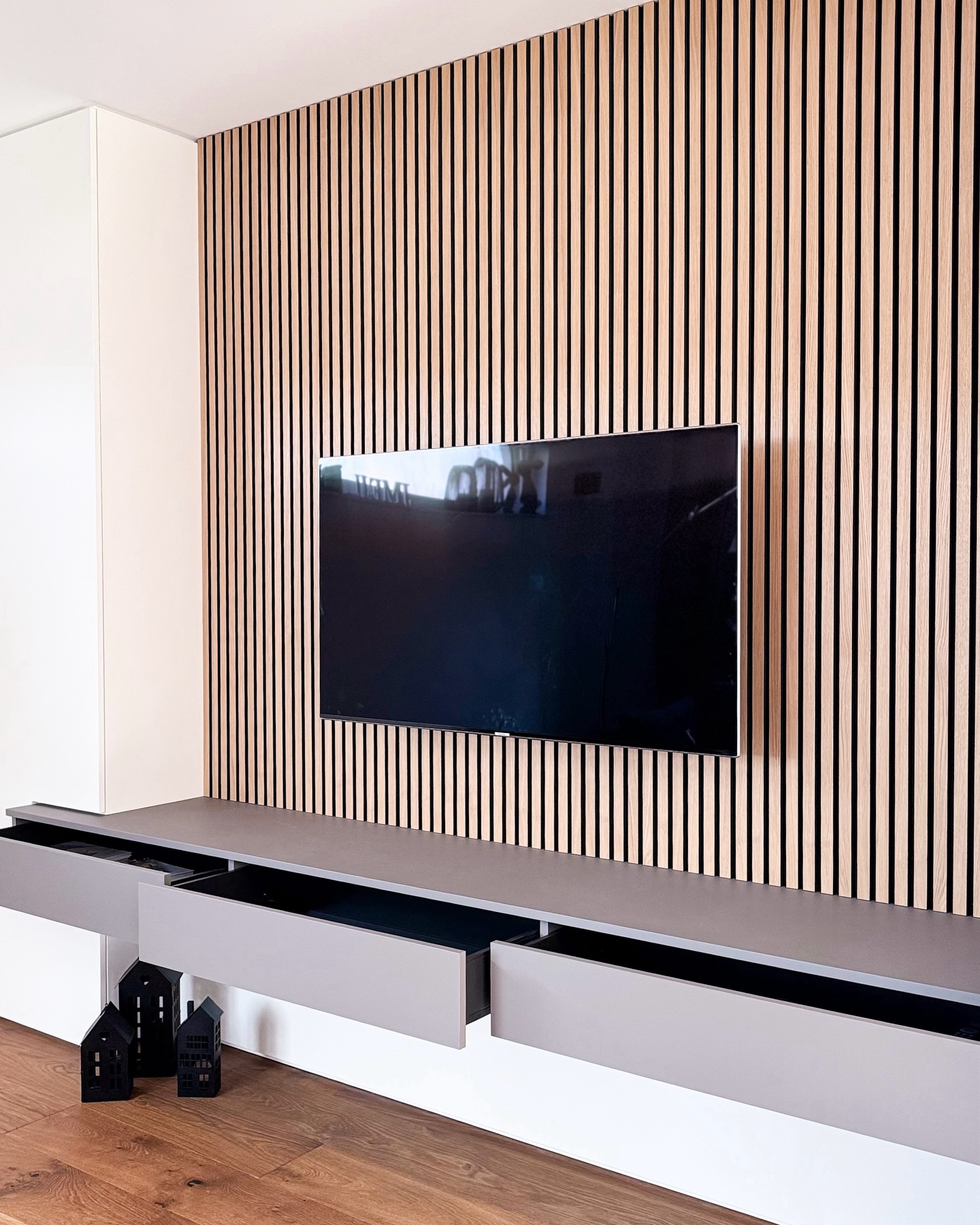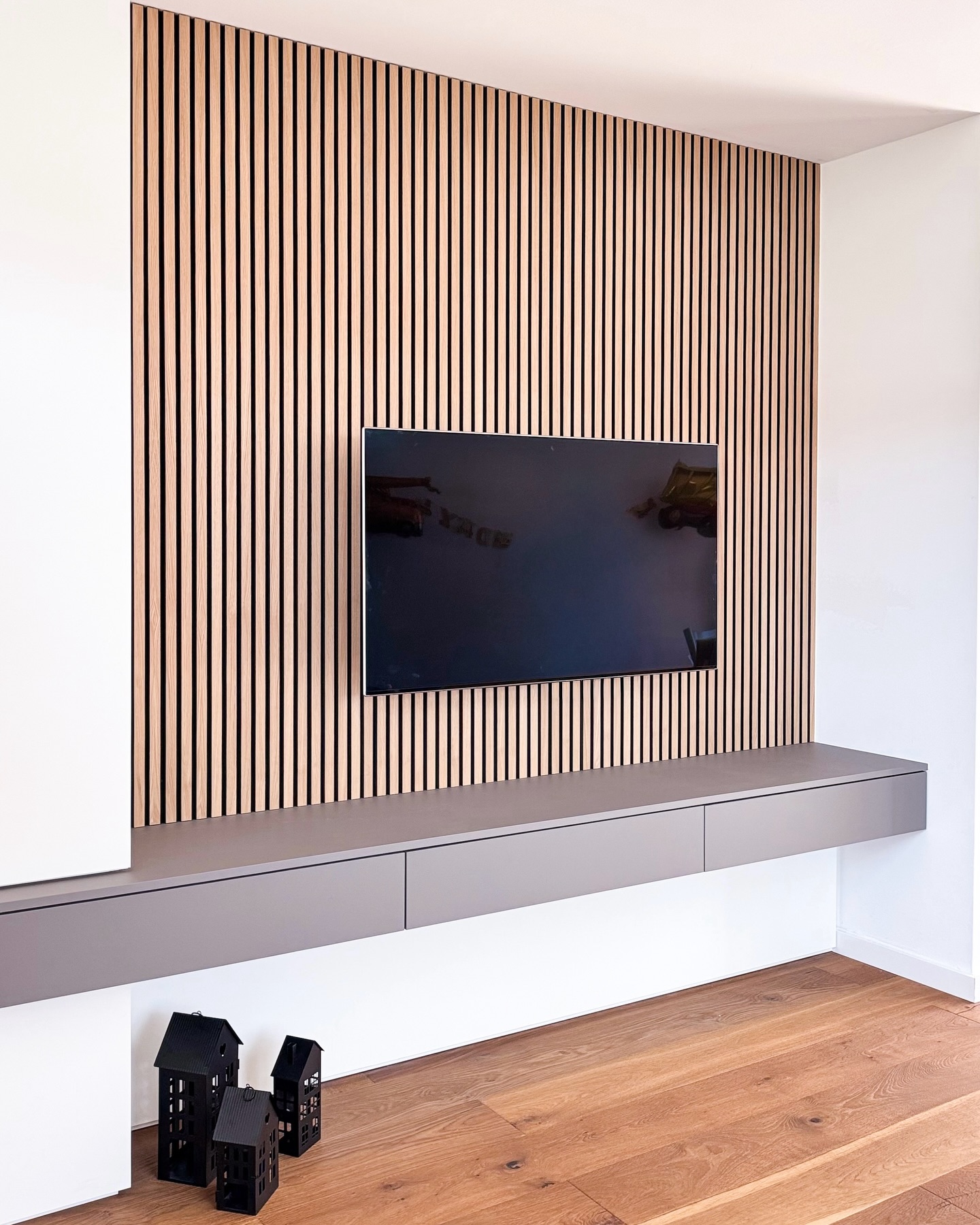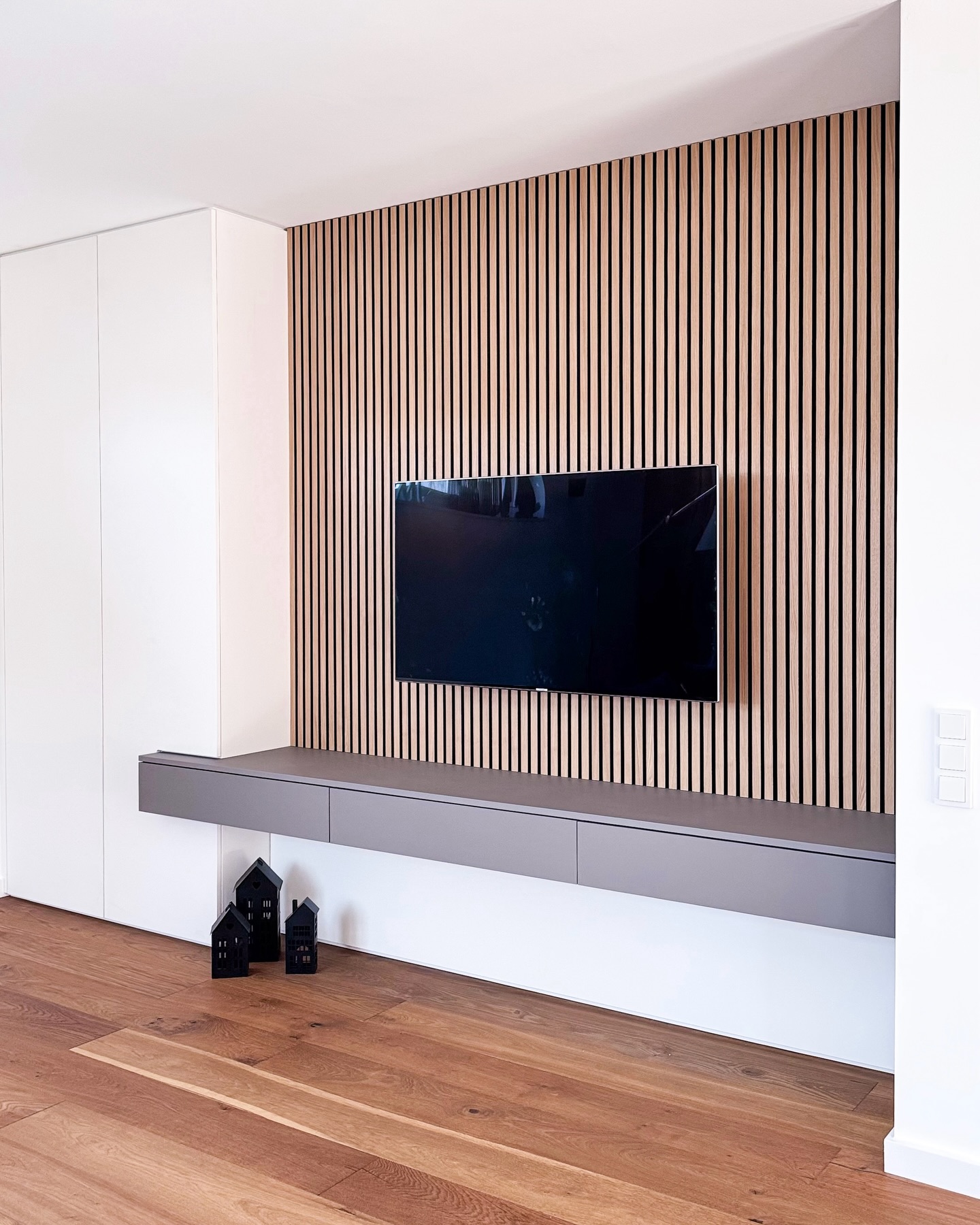 Diese TV-Wand wurde exakt für die vorhandene Nische geplant und gefertigt – abgestimmt auf Raum, Maße und Nutzung.