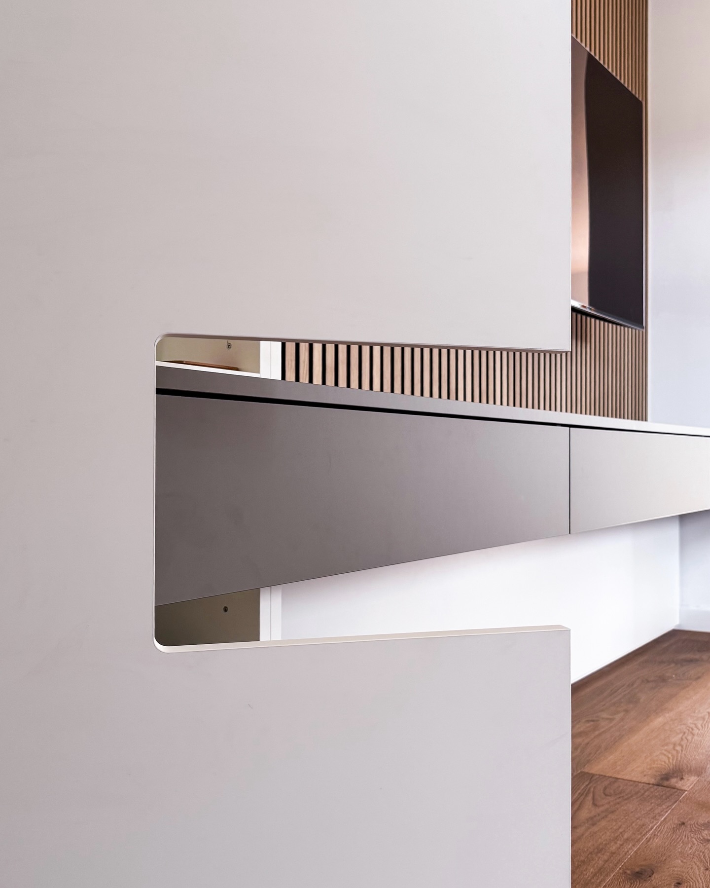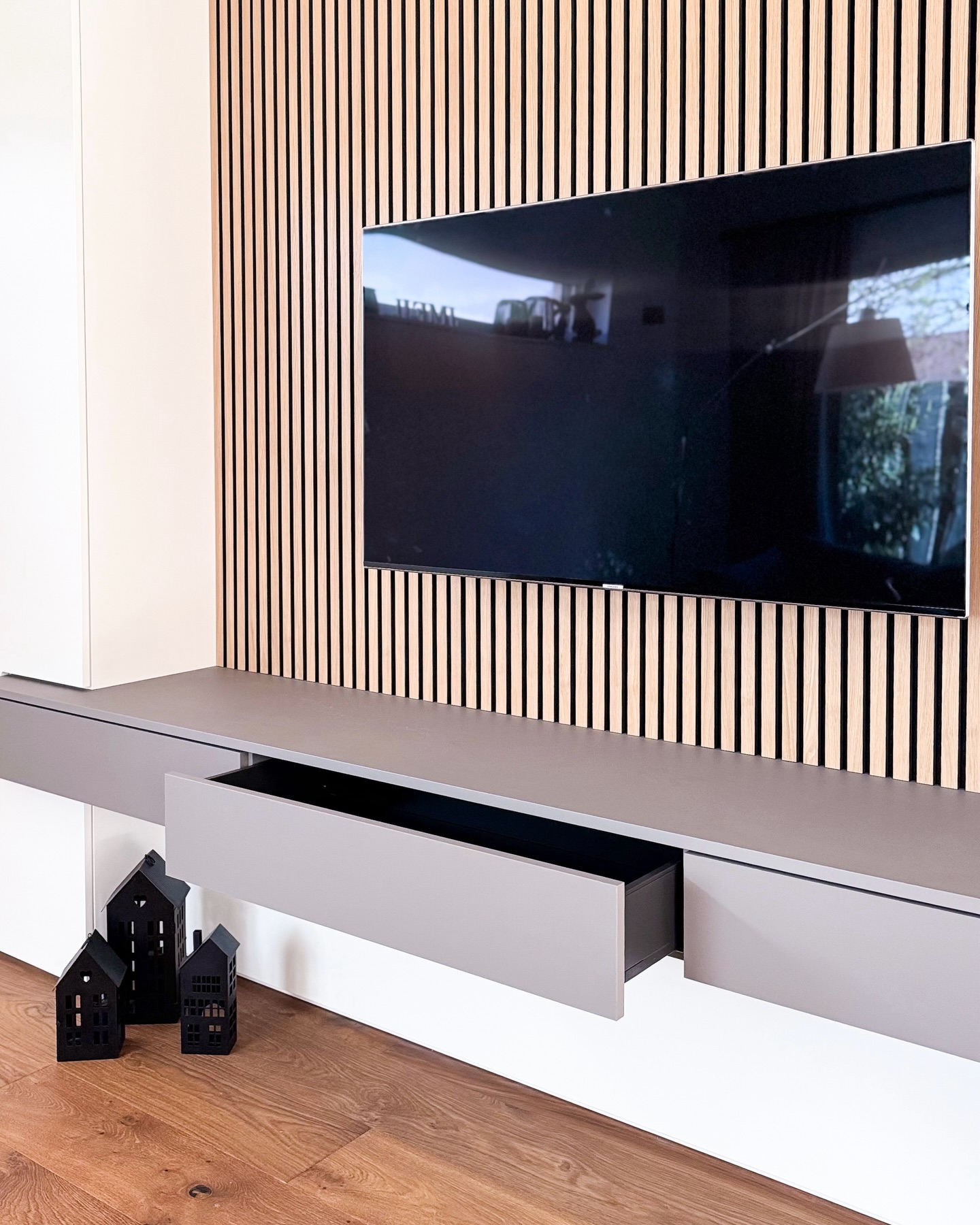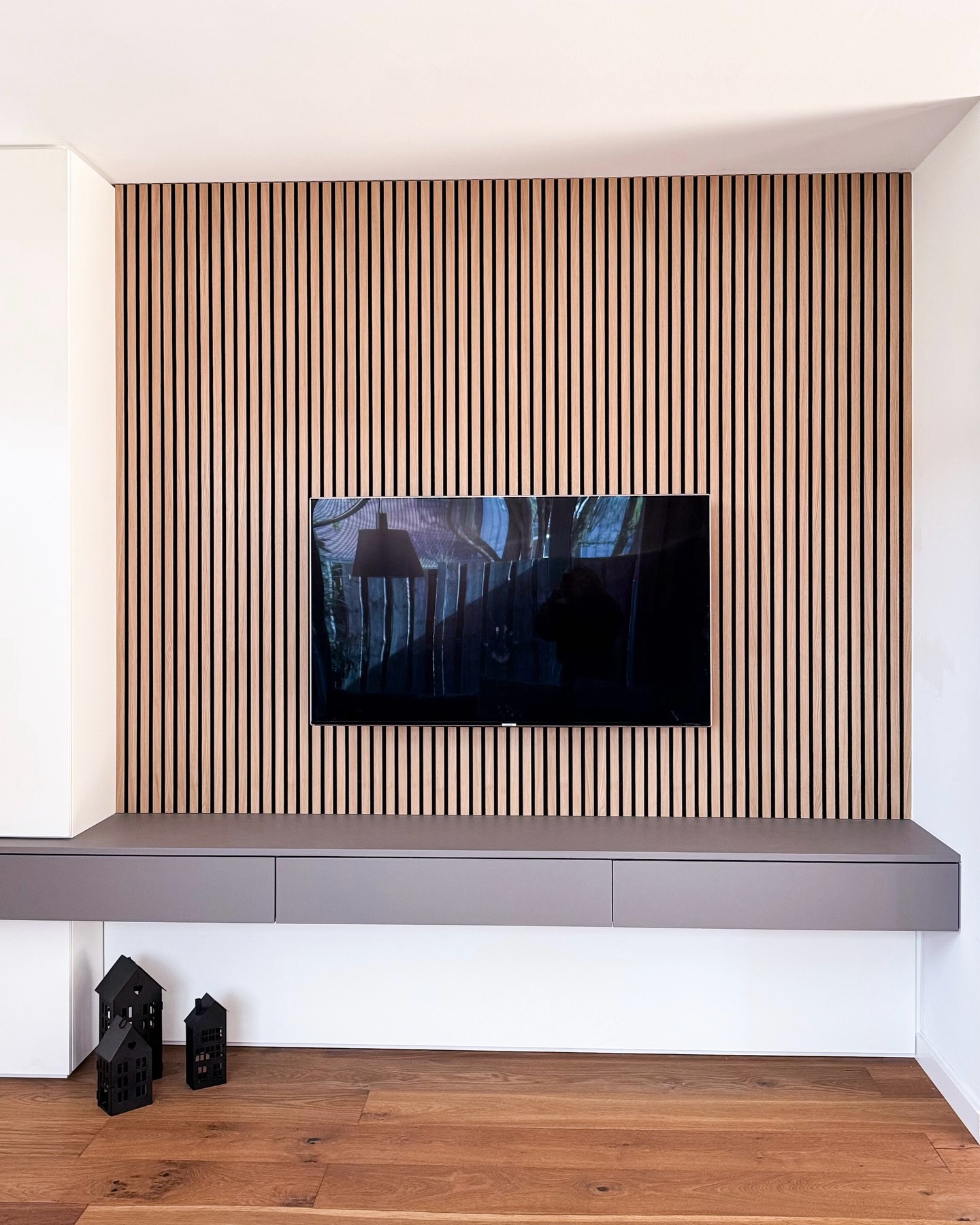 Diese TV-Wand wurde exakt für die vorhandene Nische geplant und gefertigt – abgestimmt auf Raum, Maße und Nutzung.
