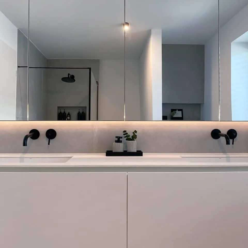 #gespiegelt #badmöbel #badezimmer #gerberhaus5 #möbel #symmetrie #wirschaffenlebensräume #hausbau #schlüsselfertig #architektur #innenarchitektur #minimalism #schwarzearmaturen #design #planung #umsetzung #allesauseinerhand