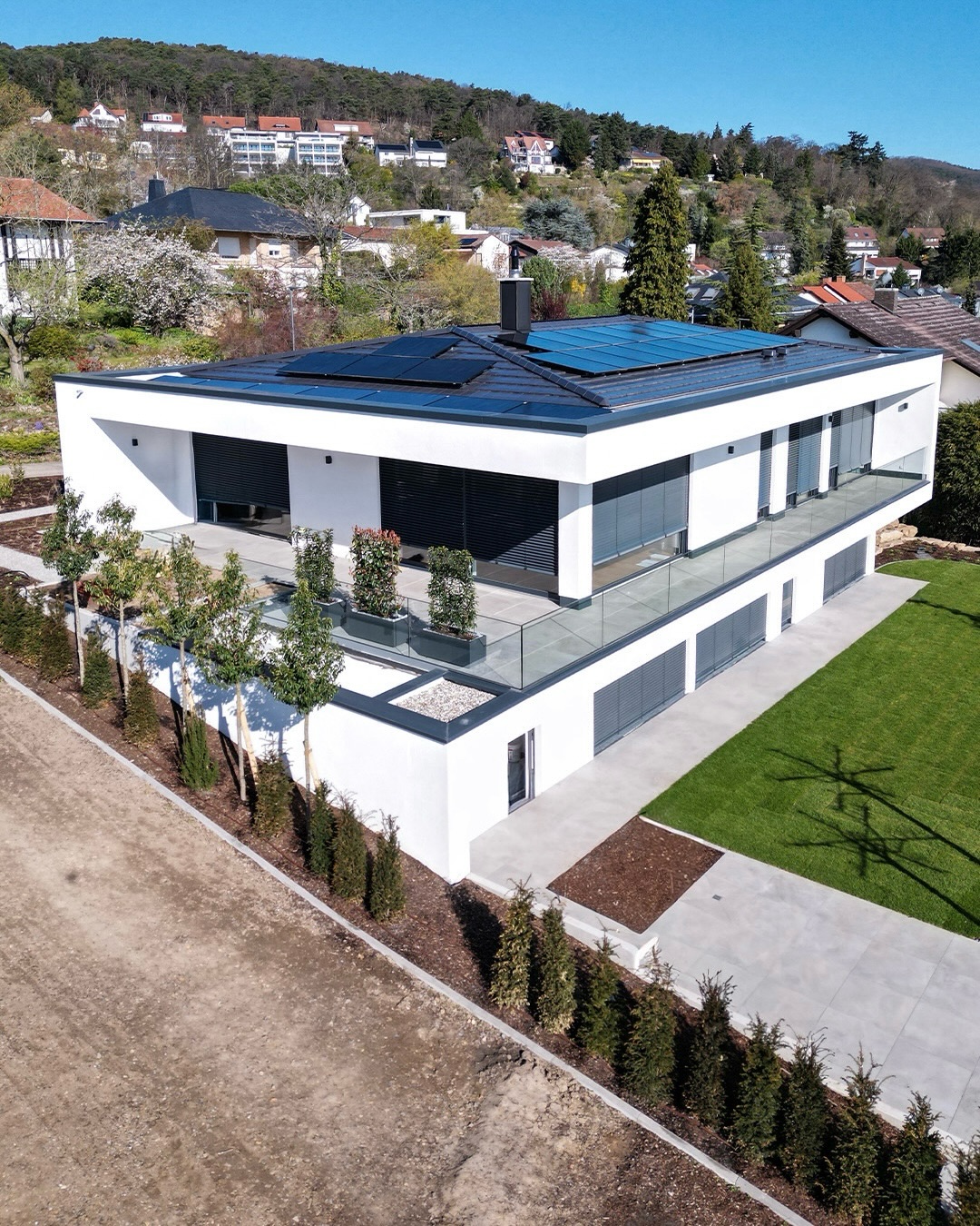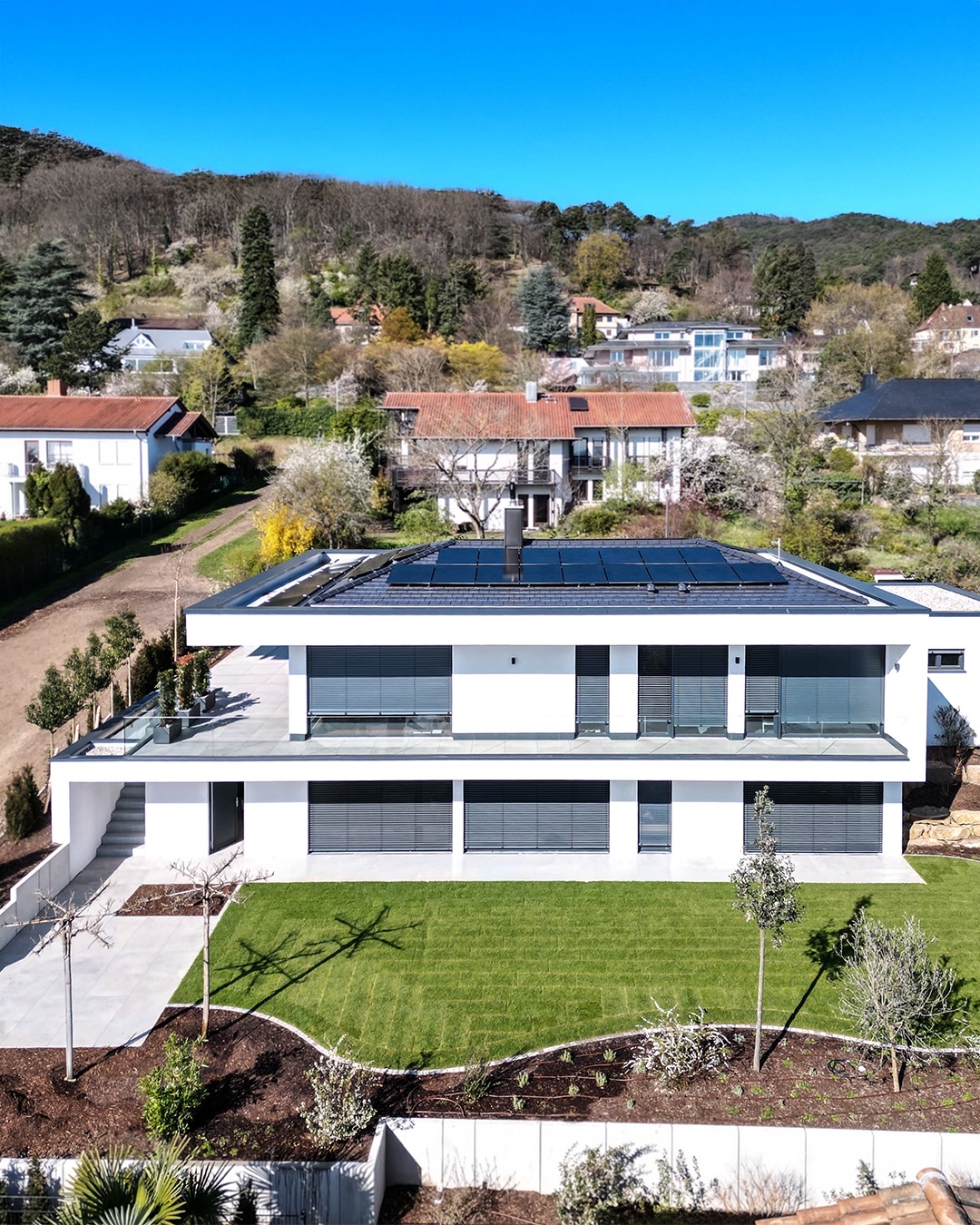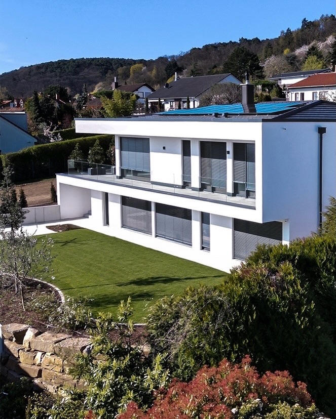 Manchmal reicht ein Blick von oben, um alles zu verstehen. Hanglage, klare Linien, maximale Ausrichtung zum Weitblick.