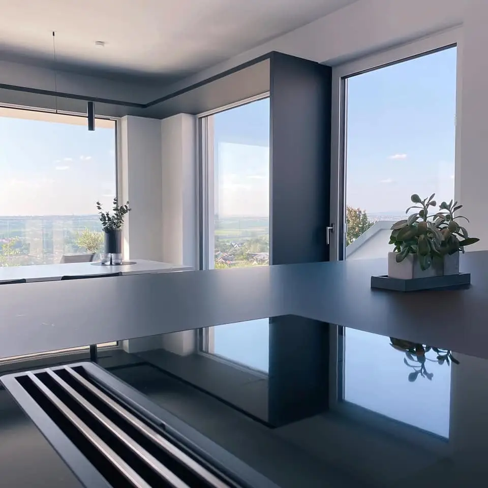 Küchen KITCHEN WITH A VIEW . 1. Oktober 2021 K I T C H E N W I T H A V I E W . Mit diesem genialen Ausblick verabschieden wir uns ins Wochenende #kitchenwithaview #esszimmer #küche #esstisch #kücheninsel #sitzfenster #interior #solebich #interiorinspo #kücheninspiration #küchenliebe #design #homesweethome #myktchn #hausbau Mehr zu Küchen finden Sie hier Moderne Küche in GERBERHAUS5 mit herrlichem Ausblick Küche in GERBERHAUS5 mit integriertem Bora Kochfeld und Abzugshaube Atemberaubende Aussicht von der Terrasse im Gerberhaus5 mit Glasgeländer, Pflanzen und bequemen Loungemöbeln