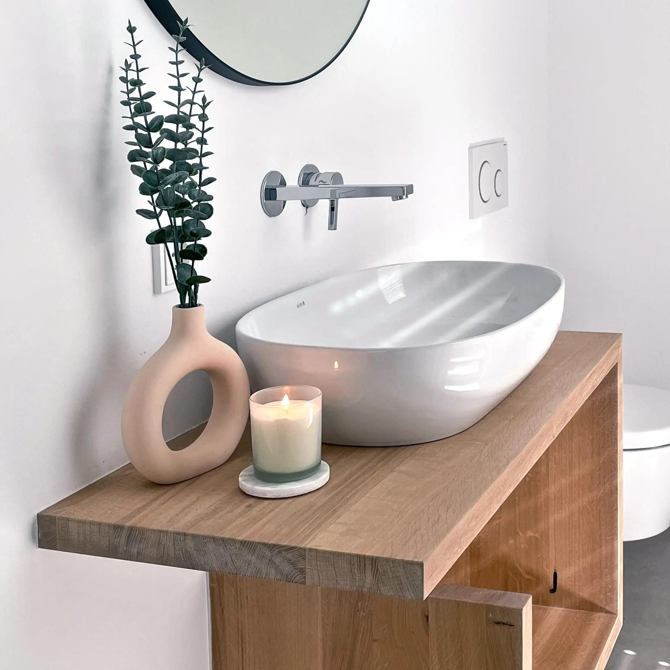Durchdachte Details sind besonders im Bad entscheidend. Oft ist der Platzbedarf begrenzt: Maßanfertigung schafft Raum, zeitgemäße Materialien setzen persönliche Designakzente – bis zur Komplettsanierung für Ihr Badezimmer. Vieles ist möglich – vom indirekt beleuchteten, freihängenden Waschtisch mit versteckten Griffmulden über fugenlose Böden, bis zu Wandverkleidungen aus Massivholz und Einbauschränke mit Spiegelflächen, gestalten optisch nahtlose Übergänge und klare Fronten.